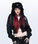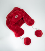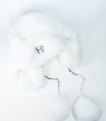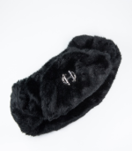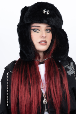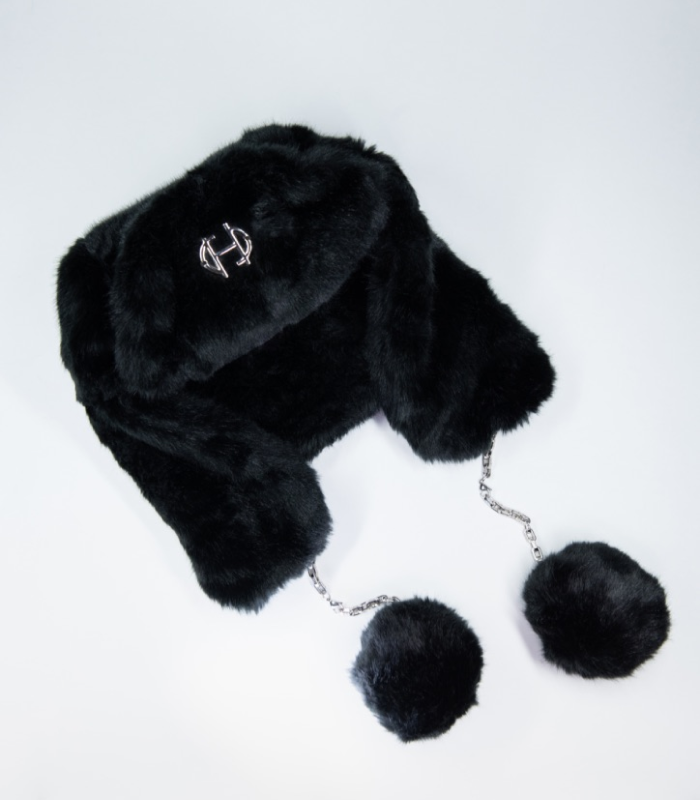 DUAL FUNCTION TRAPPER HAT IN BLACK. THIS HAT CAN BE WORN 3 DIFFERENT WAYS WITH TURN-UP BRIM, WITH THE ABILITY TO INTERMIX THE FUR BALLS