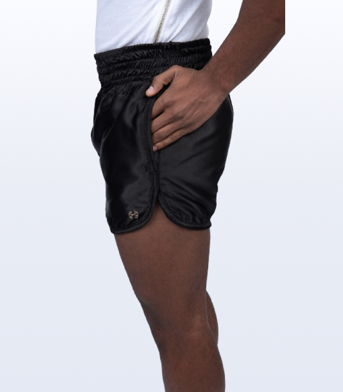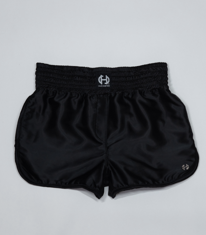 DOUBLE POCKET MID-LENGTH FIGHTER STYLE SHORTS WITH COMFORTABLE ELASTIC WAISTBAND FEATURING HAUSE DEMETRIE LOGO PATCH, WIT